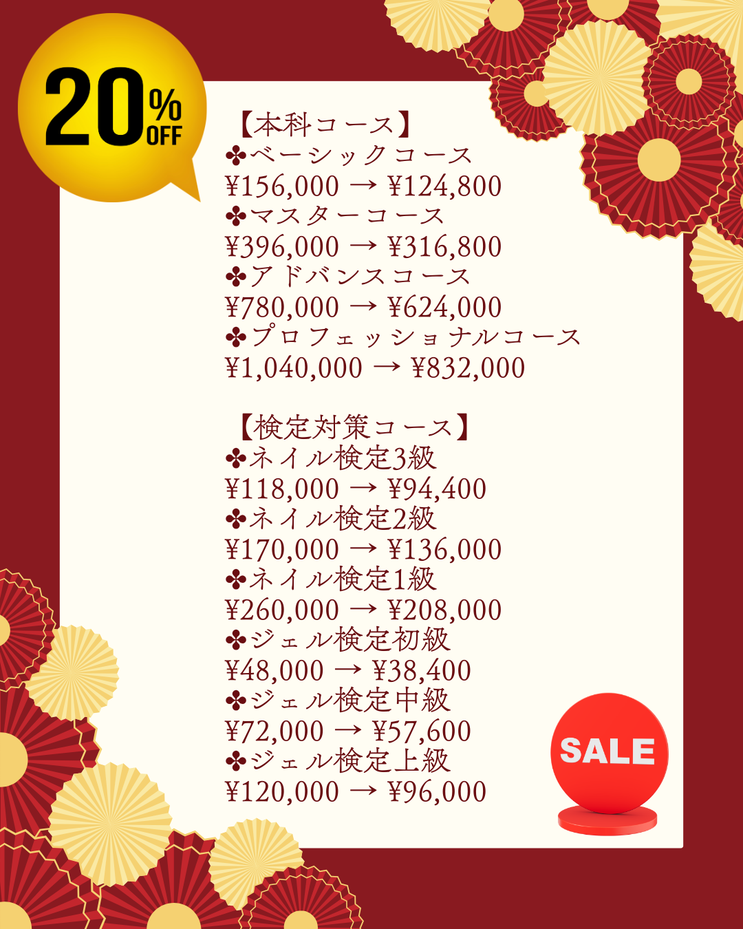 初めて当ネイルスクールに通われる方のために、授業料を【20%OFF】でご案内しています✨